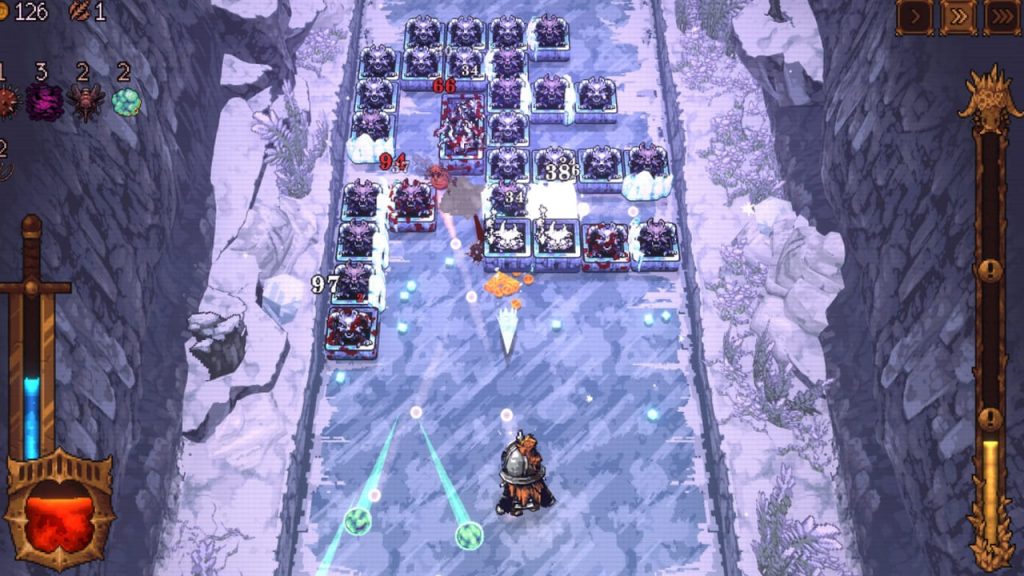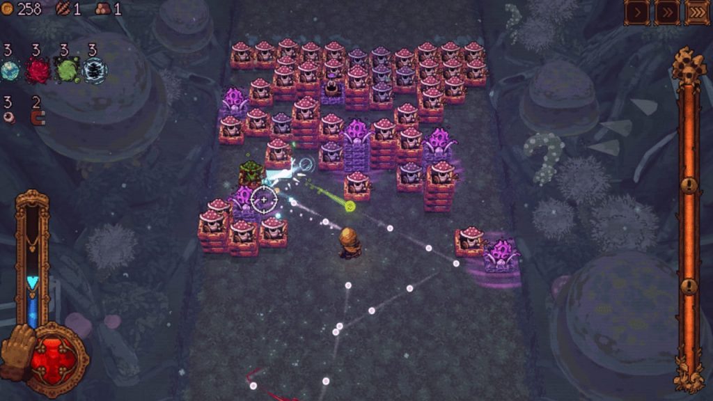 Entre as rodadas, há também gerenciamento de recursos e construção de base: o que você coleta no poço serve para expandir sua vila, liberar novas classes de heróis e criar munições especiais. Essa mistura de progresso permanente e runs curtas dá peso às decisões: gastar seus recursos raros em uma fusão arriscada agora ou guardá-los para um investimento futuro? Essa tensão estratégica muitas vezes causa frustração, e a poluição visual contribui ainda mais para a sensação de limitação e escolhas criativas do jogo. Sua dificuldade elevada pode afastar jogadores ocasionais, mesmo com a possibilidade de ajuste de velocidade.