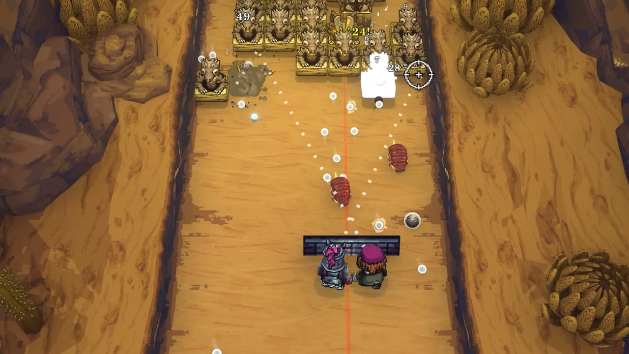 O combate tem uma física singular: as bolas quicam de forma imprevisível, e o domínio do jogo vem da leitura de trajetórias e da reação ao caos, não da memorização de padrões. O ritmo lembra títulos como Vampire Survivors, com momentos em que a tela se enche de projéteis e explosões, e sobreviver depende de reflexos rápidos e builds inteligentes.
