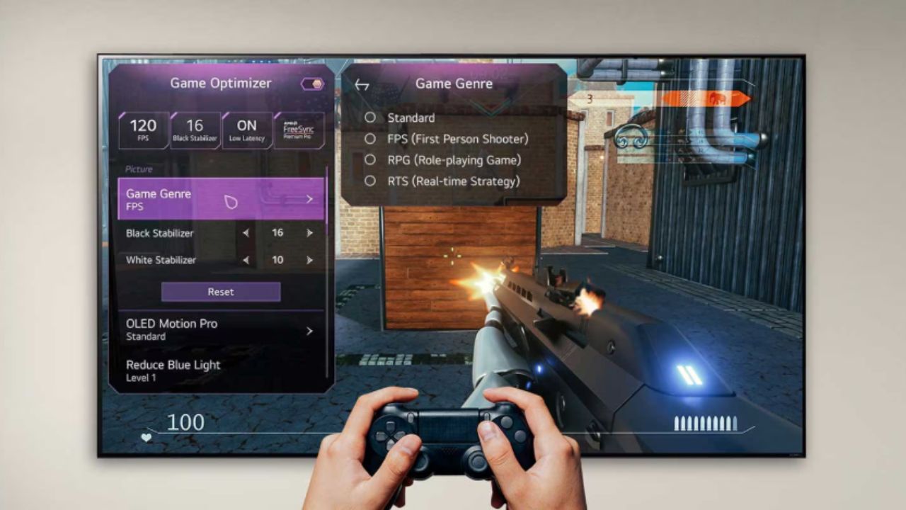 O modelo também inclui o Otimizador de Jogos, que adapta automaticamente o desempenho da TV conforme o gênero jogado. São cinco perfis predefinidos — incluindo FPS, RPG e RTS — além da possibilidade de personalizar as configurações conforme a preferência do jogador.