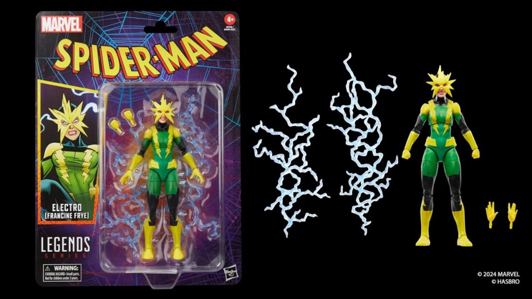 A Electro (Francine Frye) se junta a outras figuras da linha Marvel Legends Retro, consolidando-se como uma das mais procuradas por colecionadores que buscam representar a galeria de vilões do Homem-Aranha em suas estantes.
