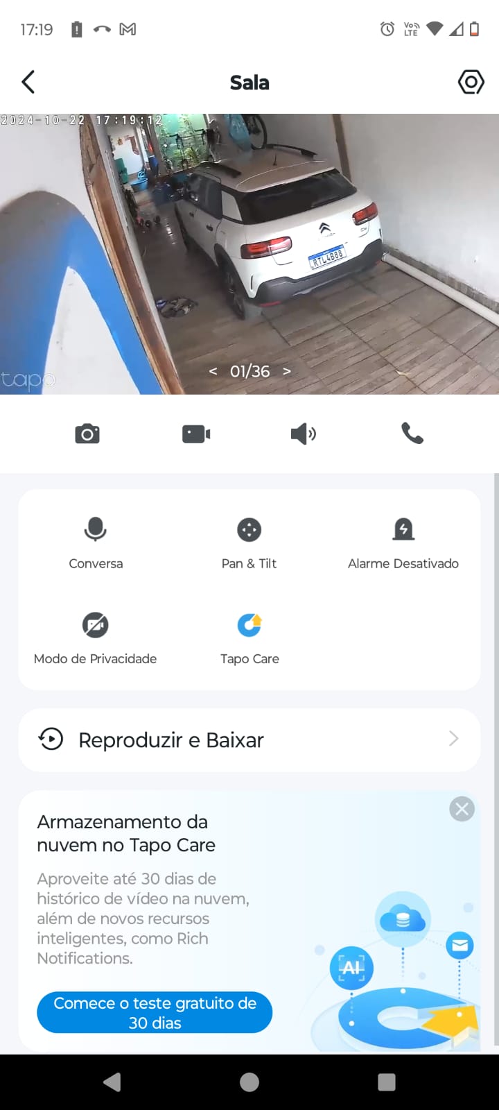 - Assinatura Tapo Care necessária para armazenamento na nuvem e funcionalidades avançadas;