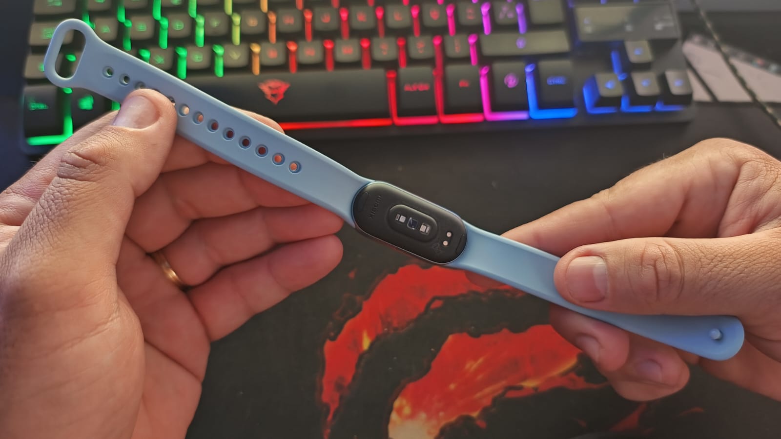 A bateria da Xiaomi Smart Band 9 é um destaque à parte. Após uma carga completa em apenas uma hora, usei o dispositivo por 7 dias com notificações ativadas e ainda restava cerca de 60% de bateria.